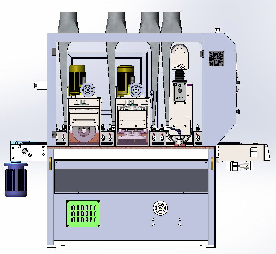 1、通过式加工,一次进料完成表面研磨、毛刺去除、边角光滑的工作